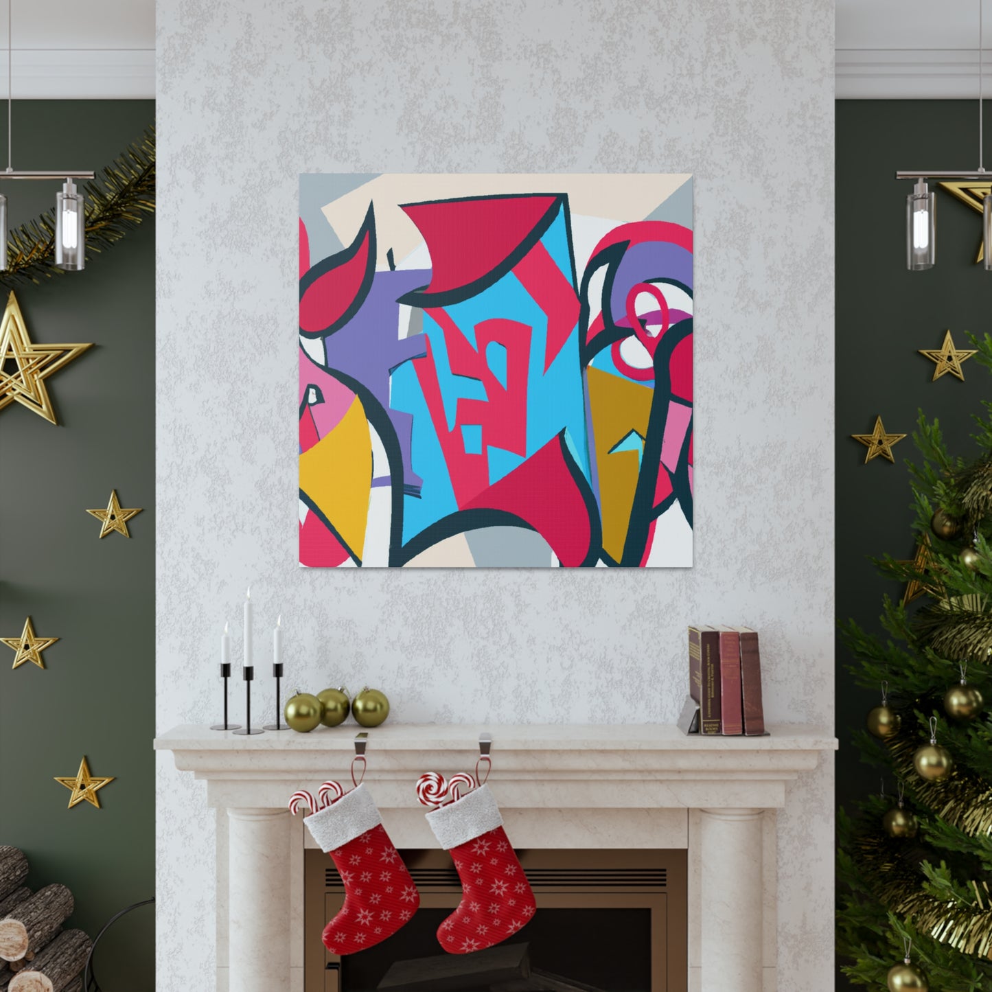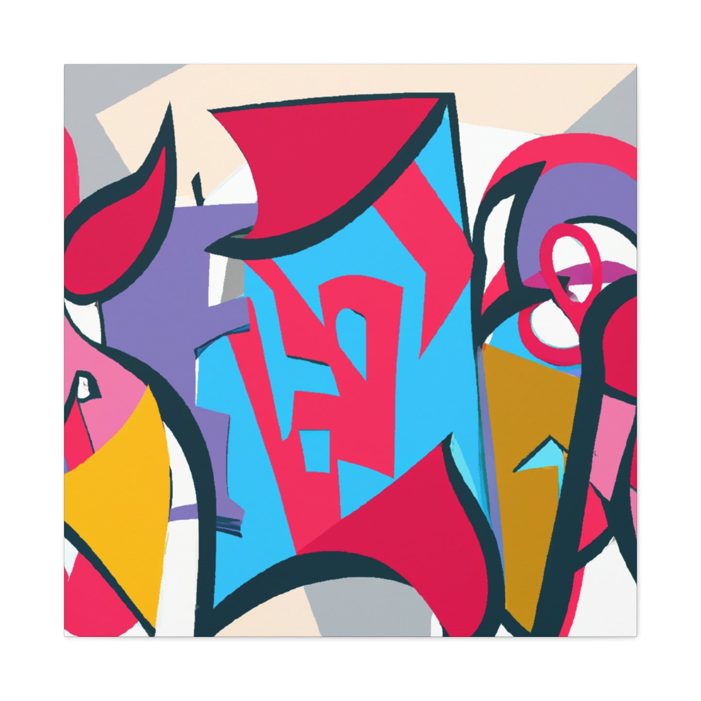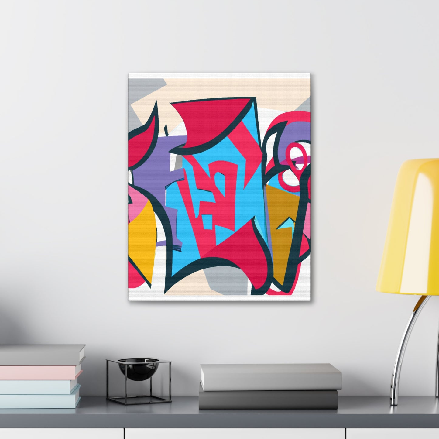 This expertly crafted canvas of graffiti art is sure to add an unexpected cool flair to any room. With bright blues, greens and pops of warm pink, this piece is sure to catch the eye of any art aficionado. Perfect as a statement piece to bring attention to a modern and hip décor. Hang it in your living room for a conversation piece that invites vibrancy and life into the home. #graffitiart #canvas #art #modern #vibrant #statementpiece #roomdecor #cool #unique #bright #fun