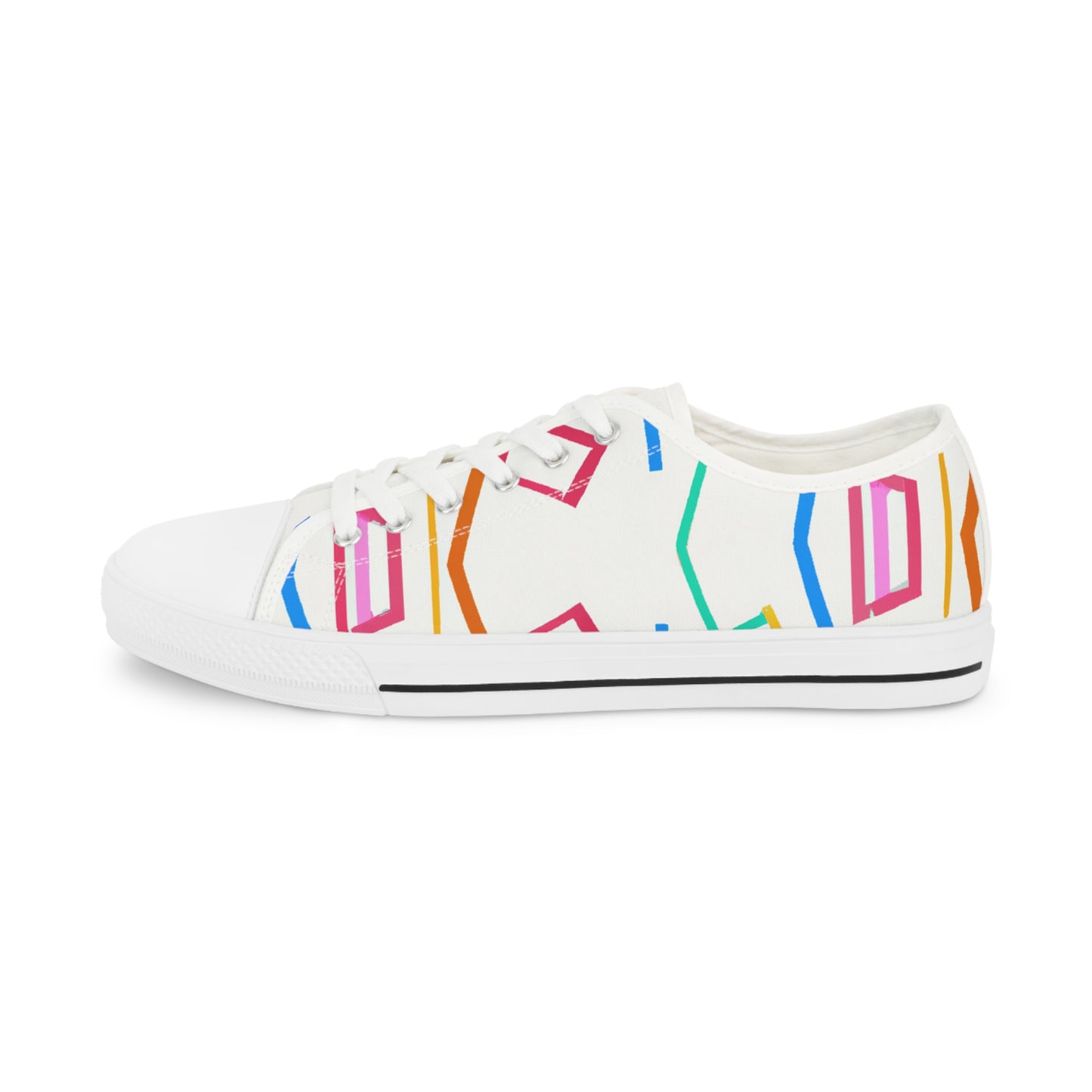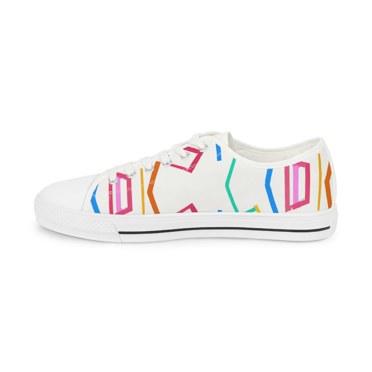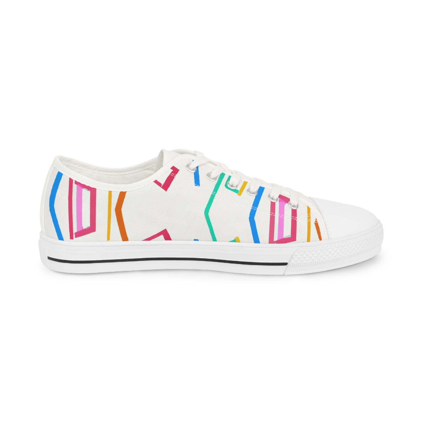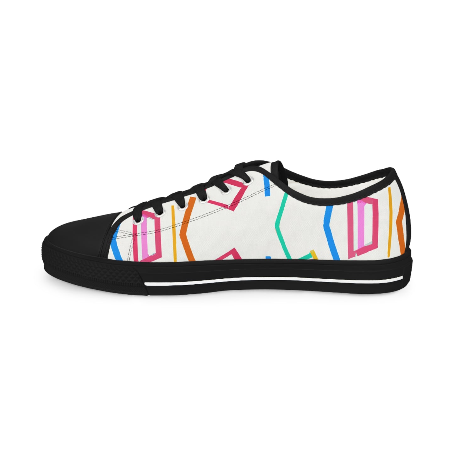 Geometric Art Sneakers provide a stylish, bright and bold look to your outfit. Featuring vibrant colors and unique hues, these cutting-edge sneakers stand out in the crowd. The comfortable foam insole keeps your feet comfortable all day long and the breathable fabric keeps your feet cool throughout the day. Add a modern streetwear vibe to your ensemble with these unique classic sneakers. #geometricartsneakers #classicsneakers #modernstreetstyle #boldlook #brightshoes #coolestshoes #fabricinsole #colorvibes #uniquestyling #comfyallday #vibrantcolorsand