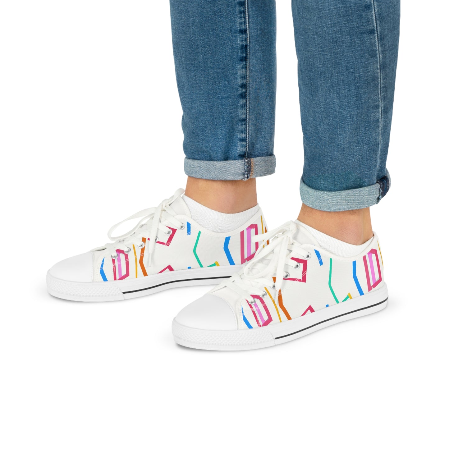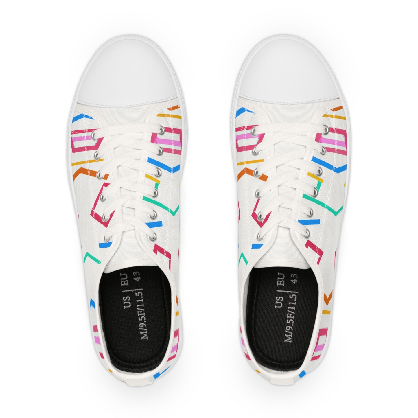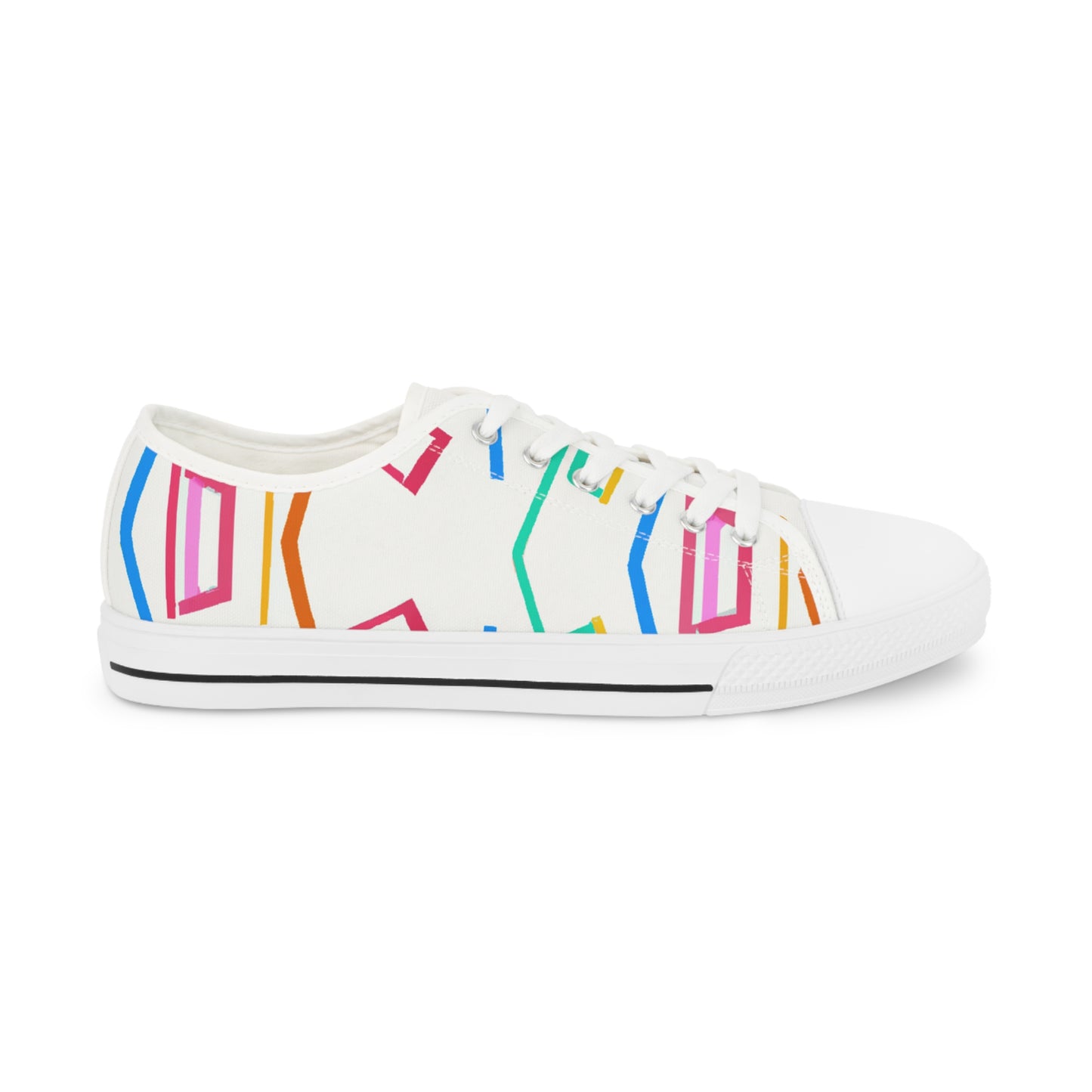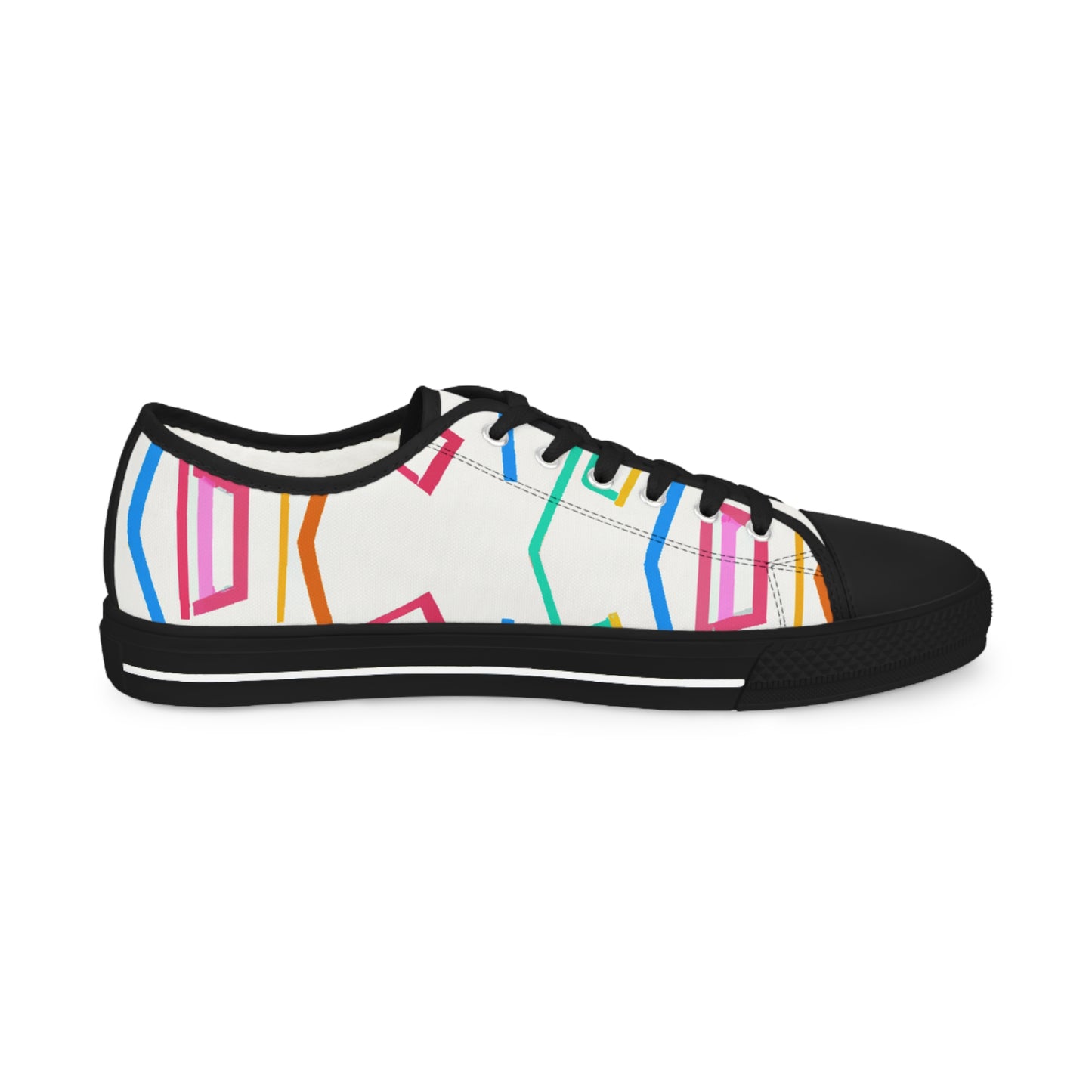 Geometric Art Sneakers provide a stylish, bright and bold look to your outfit. Featuring vibrant colors and unique hues, these cutting-edge sneakers stand out in the crowd. The comfortable foam insole keeps your feet comfortable all day long and the breathable fabric keeps your feet cool throughout the day. Add a modern streetwear vibe to your ensemble with these unique classic sneakers. #geometricartsneakers #classicsneakers #modernstreetstyle #boldlook #brightshoes #coolestshoes #fabricinsole #colorvibes #uniquestyling #comfyallday #vibrantcolorsand