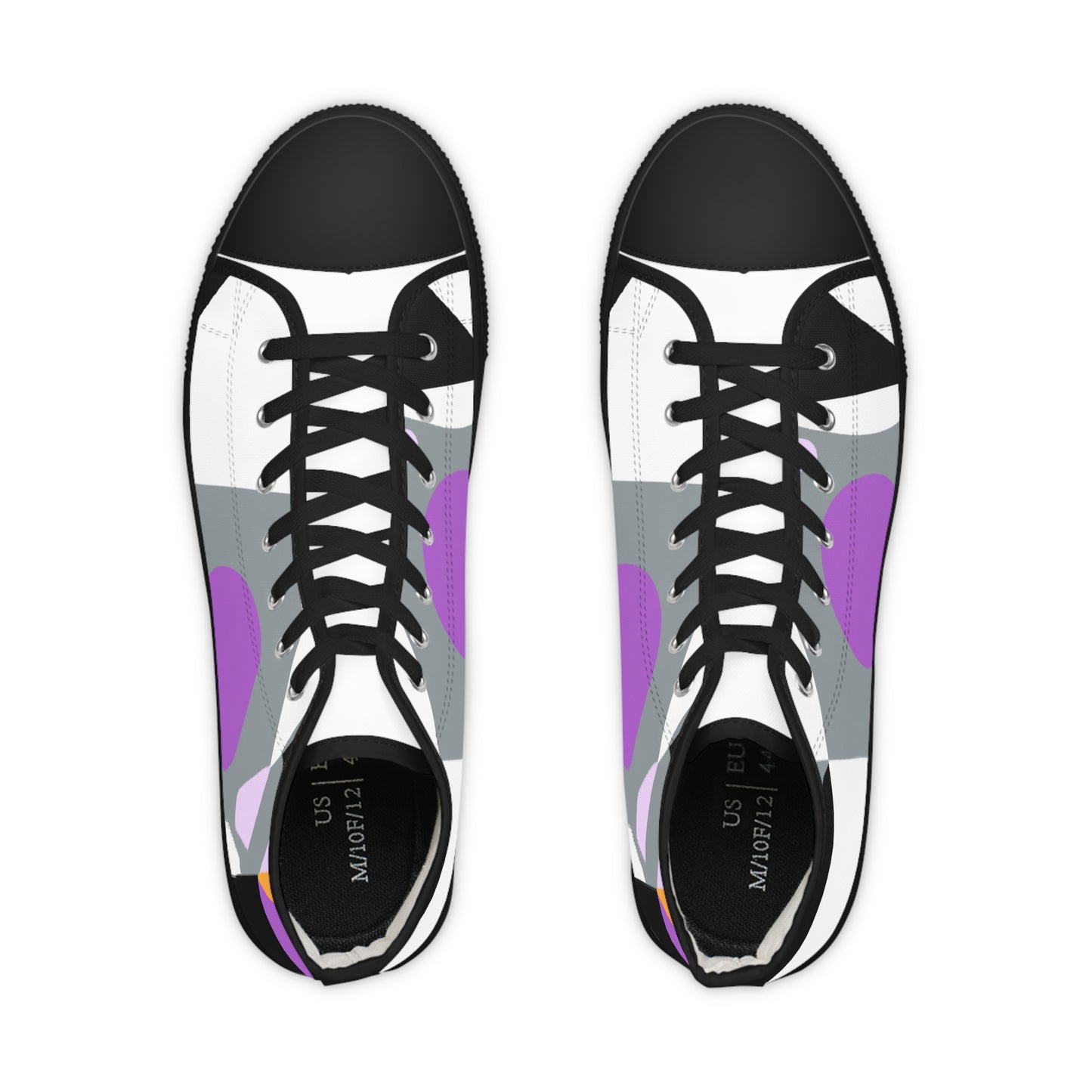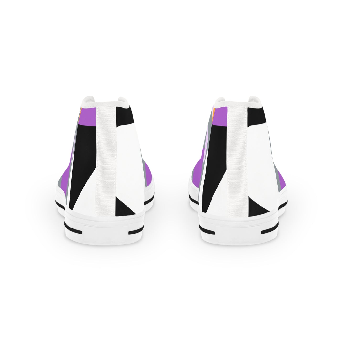 These Geometric Art High Top shoes will help you rock a vibrant and modern aesthetic. Each shoe is made of rugged canvas and features bold geometric shapes and bright colours, perfect for expressing your individuality. Joining fashion and function, the rubber sole ensures you stay comfortable all day. Whether you're going to school or rule the dance floor, these high top shoes add a touch of fun and style. #GeometricArt #HighTopShoes #VibrantColors #ModernAesthetic #StyleFun #FunctionalFashion #CanvasShoes #ExpressYourself #BoldGeometry #UniqueDesign #ComfyFit